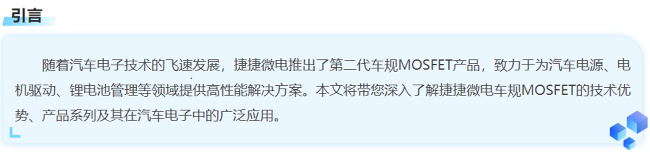 捷捷微電在封裝技術(shù)上不斷推陳出新,推出了多種先進(jìn)封裝形式,如DFN2020、PDFN5x6、PowerJE?等,滿(mǎn)足不同應(yīng)用場(chǎng)景的需求。特別是在車(chē)載應(yīng)用中,捷捷微電的封裝技術(shù)能夠有效提升散熱性能,確保器件在高溫環(huán)境下穩(wěn)定運(yùn)行。